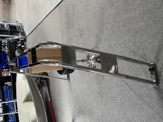 Sehr schöner Geräteträger aus Edelstahl für kleinere Boote mit einer Montagebreite von 80-180cm. Die Höhe des Geräteträgers beträgt 120cm.