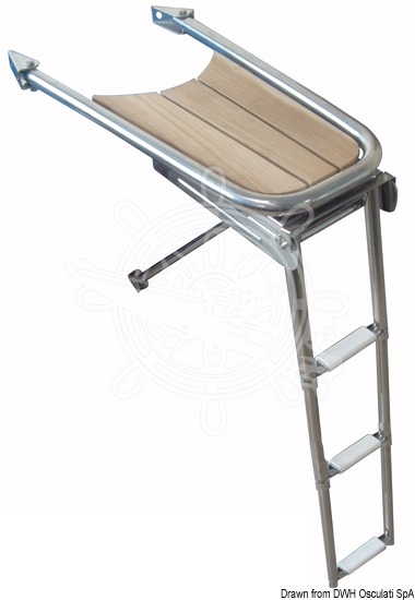 Bugspriet aus hochglanzpoliertem, rostfreiem Edelstahl AISI 316, Trittfläche mit echten Teakleisten. Verstellbare Halteaufnahme