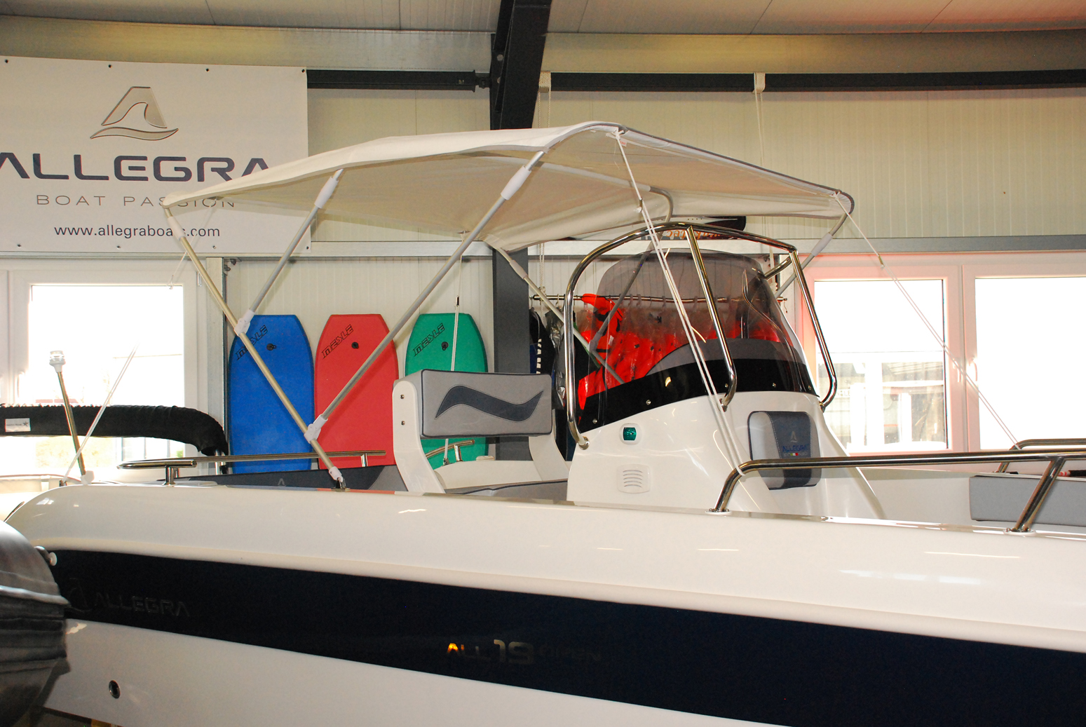 Bimini-Top für Motorboote und Schlauchboote. Das Bimini Top kann blitz schnell eingeklappt werden.