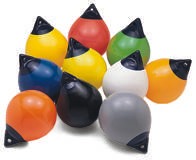 Bojen mit verstärkten blauen Fenderaugen für starke Belastung. Wie alle POLYFORM-Fender wird auch diese Boje aus einem Stück gefertigt, ein Fertigungsverfahren, das nur POLYFORM anwendet. Die starke Belastbarkeit dieser Bojen macht sie unentbehrlich in der Hochseefischerei und im Offshore-Bereich.